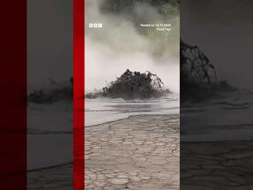 A mud volcano erupted in Taiwan, releasing water with sediments and gas. #Taiwan #BBCNews