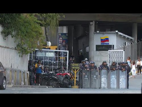 Police outside Caracas' El Helicoide detention center after prisoner release announcement | AFP